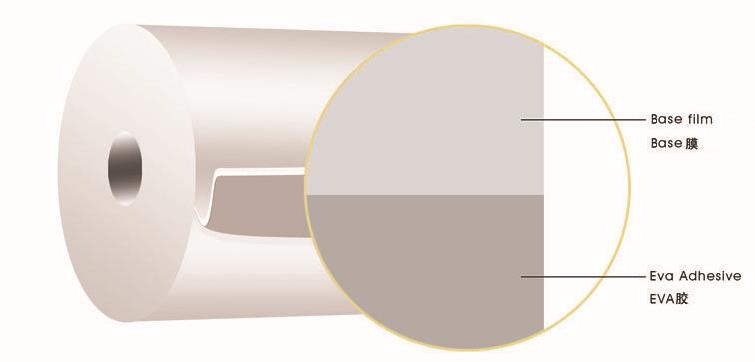 Структура овог 3Д филма за термичку ламинацију је „посебно конструисана за постизање стабилног отиска и ефикасног ламинирања“. Најважнији аспект је ПЕТ супстрат, који обезбеђује димензионалну стабилност филма током процеса утискивања и загревања. На основном материјалу, посебно дизајниран слој текстуре је трајно утиснут процесом високе температуре и високог притиска. На дну се налази наш специјално формулисани ЕВА термо топљиви слој лепка из Таи'ан-а, који обезбеђује чврсту везу без мехурића са подлогама као што је папир на стандардној температури ламинације.