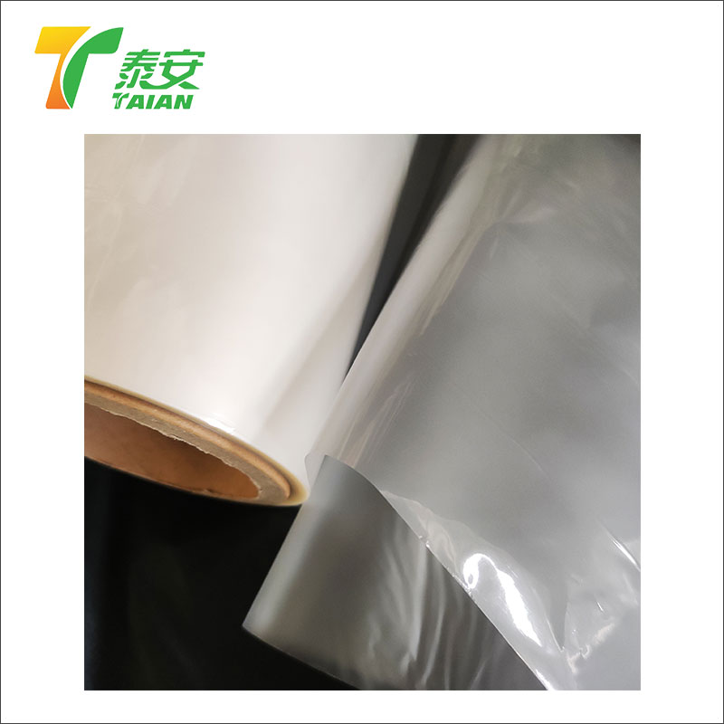 ТАИАН Мат биоразградиви филм за термичку ламинацију састоји се од целулозног диацетатног филма и ЕВА. Мат биоразградиви филм за термичку ламинацију обично се ламинира на површину штампаног папира или картона. Упркос својој инхерентној биоразградивости, ТАИАН мат биоразградиви филм за термичку ламинацију је веома стабилан и не распада се у нормалним условима крајње употребе. ЕВА лепљиви слој није биоразградив и компостабилан. Тренутно развијамо компостабилни и биоразградиви лепљиви материјал, који је здравији и еколошки прихватљивији.