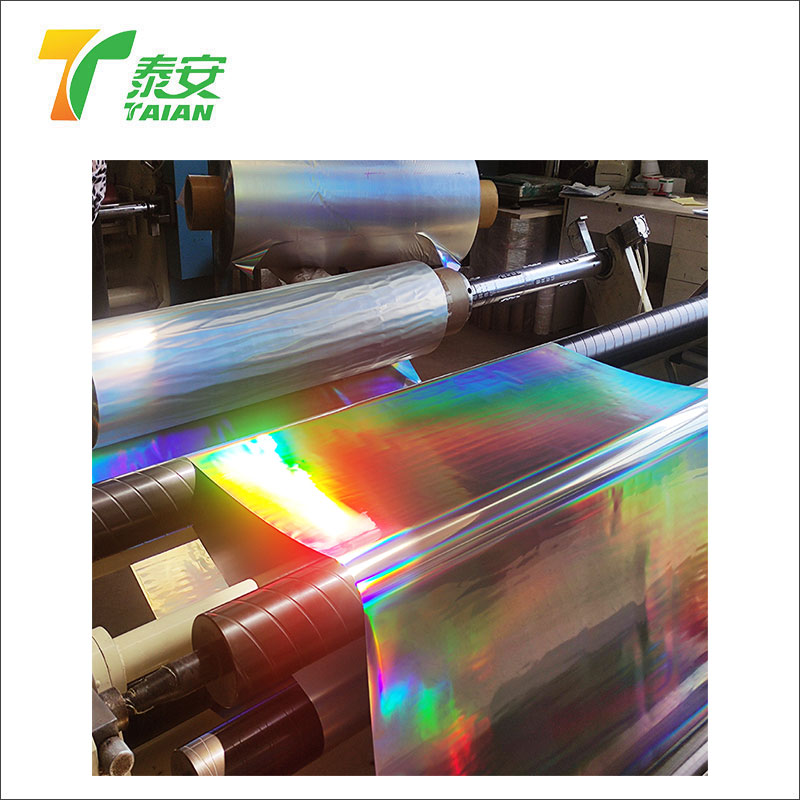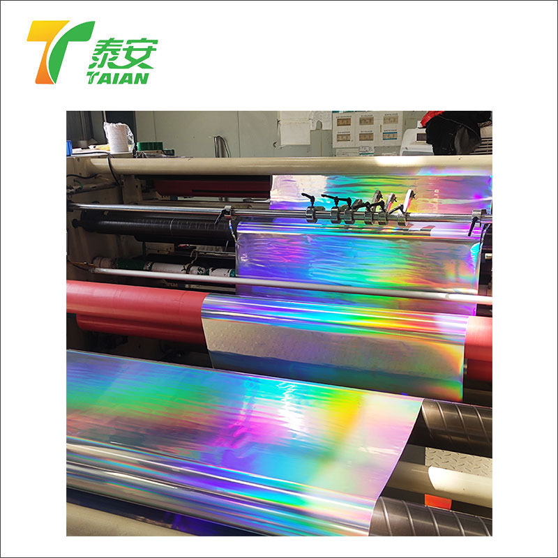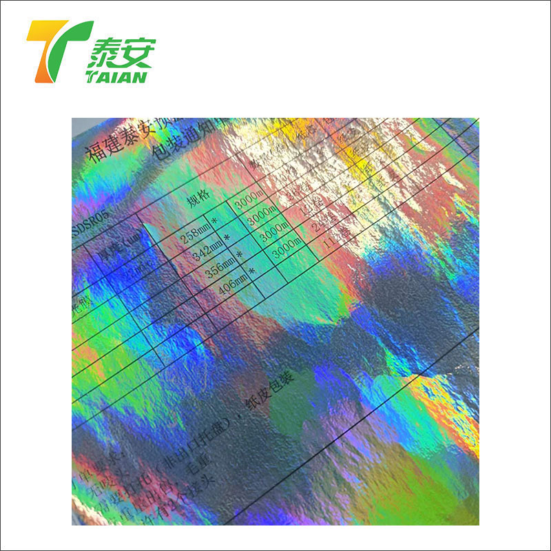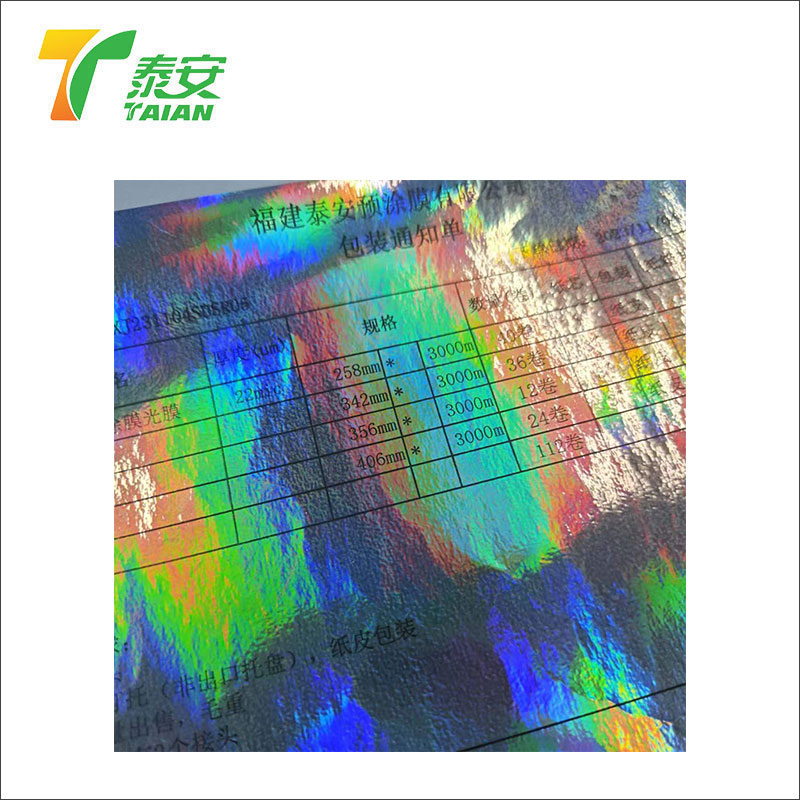 Метализирани холографски термо ламинацијски филм у дугиним бојама који производи Таиан може се користити за штампање текста са јасним писањем након претходног премаза.